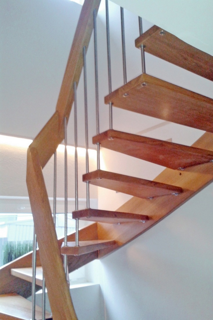 Sie setzt auf die bewährte Qualität und Eleganz der Wangentreppe, kombiniert mit belastungsfähiger Verbindungstechnik. Dabei werden die Wangen und Stufen mit Tragbolzen verschraubt, was der Holztreppe einen modernen Charakter verleiht. Klare Linien und Formen dominieren hierbei.